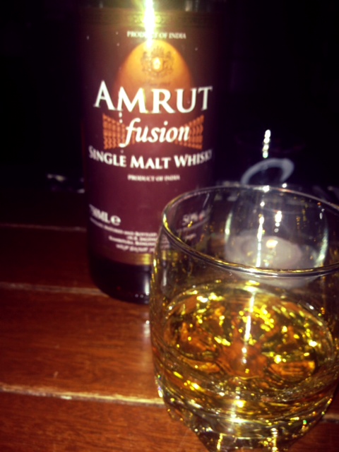 Whisky is not the only product in their portfolio; they also make Rum, Brandy, Gin and Vodka. The whisky that I tasted last night was their Amrut Fusion Single Malt Whisky. The product is aged in oak barrels and is distilled with barley from both Scotland and India. Due to India’s warmer climate the whisky actually matures very quickly.