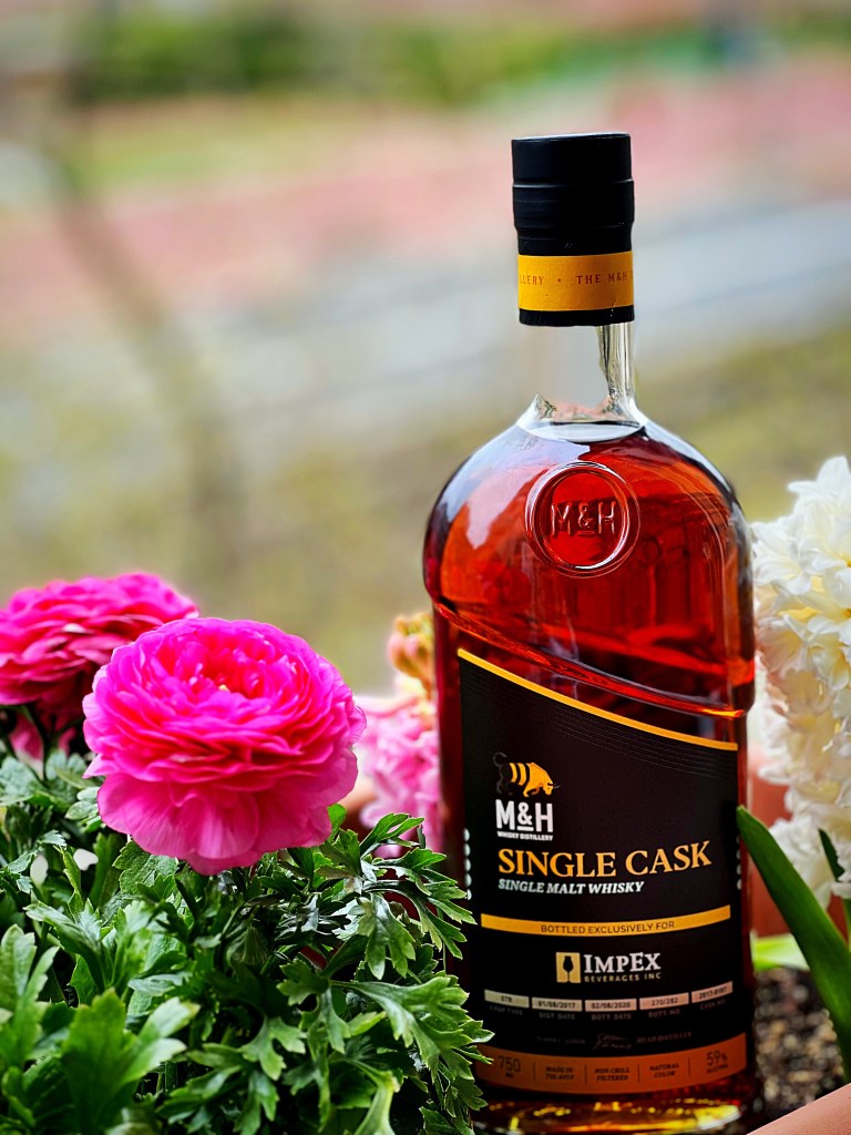 This was a cask hand selected by the Impex and M&H team, matured in STR wine casks. It was bottled on 02/08/2020 its bottle number is 270/280 and cask no., 2017-0198. It’s a cask strength whisky with an ABV of 59%.